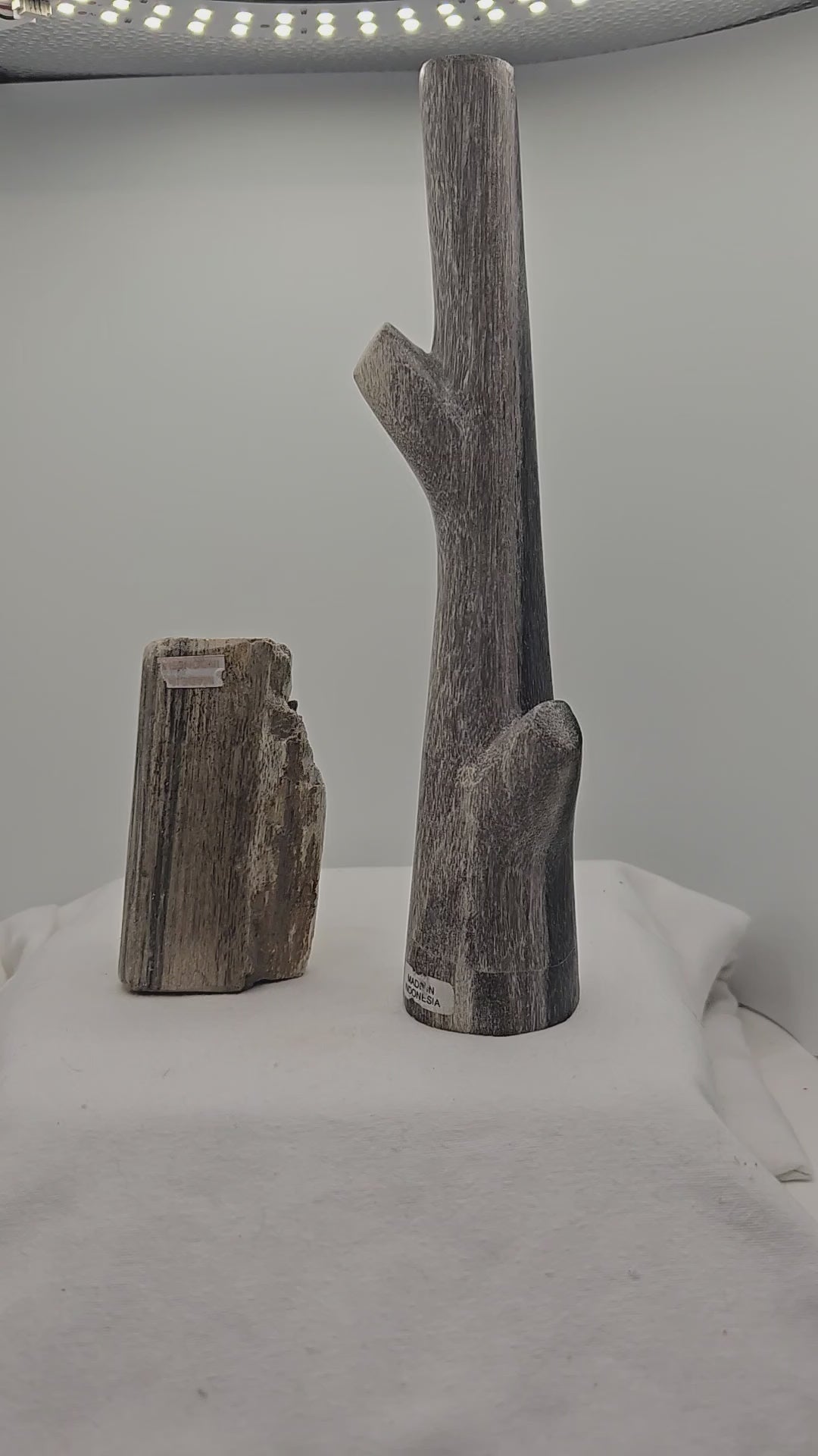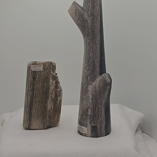 Two pieces of unique petrified wood pieces.