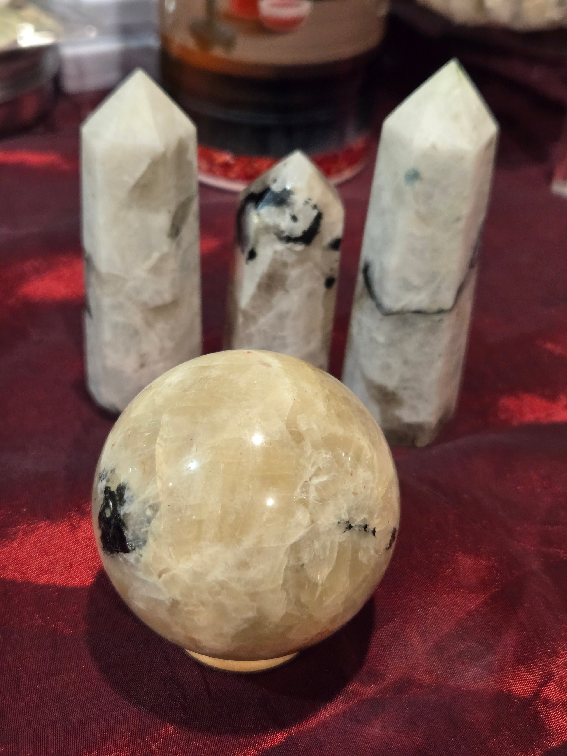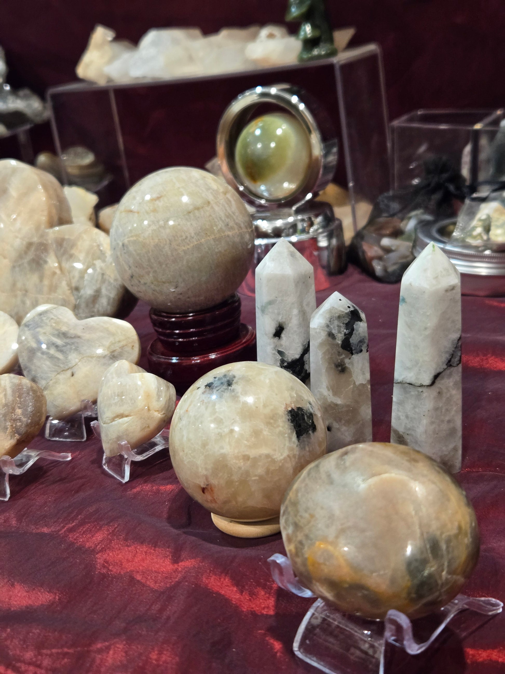 Some different kinds of Moonstone for my rock garden. Rainbow, Peach, Black and regular with blue flash.Step into a moonlit garden with our Moonstone collection—featuring glowing peach and mystical blue-flash pieces. From palm-sized companions to tender hearts, each stone is a beacon of intuition and emotional insight. Moonstone is known to guide dreams and balance energy—a perfect nightly garden charm to hold close as you navigate life’s journey.